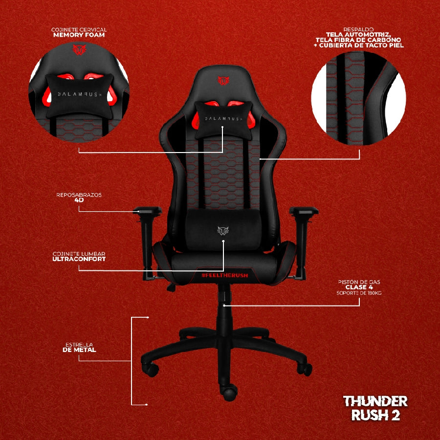 Silla Gamer Ergonómica Thunder V2 | BR Edition Mediana Plus Tela y Piel Reclinable Soporta hasta 150 Kg, Negro-Rojo