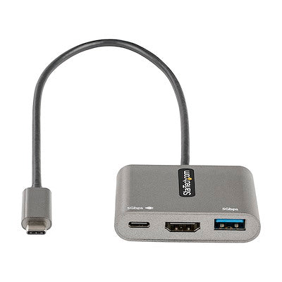 pantallas compatibles: 1 tipo de bus: usb-c tipo(s) de: 1 usb 3.2 type-c (24 pines, gen 1, 5gbps) ancho del producto: 115.000 mm tipo(s) de: 1 usb tipo c (24 pines) con entrega de alimentacion por usb solamente longitud del producto: 60.000 mm peso del producto: 102.000 g color: gris altura del producto: 10.000 mm estandares industriales: hdmi 1.4 id del conjunto de chips: parade - ps176 via/vli - vl817 via/vli - vl103 consumo de energia: 8w watts compatibilidad con 4k: si resolucion digital maxima: 4096 x 2160p @ 24hz 3840 x 2160p @ 30hz 3440 x 1440 @ 60hz 1920 x 1080 @ 120hz tambien se admiten resoluciones inferiores. estandares industriales: usb 3.0 - retrocompatible con usb 2.0 y 1.1 tasa de transferencia de datos maxima: 5gbps (usb 3.0) tipo y velocidad: usb 3.0 - 5 gbit/s adaptador de corriente incluido: bus powered and host usb-c power adapter longitud del cable: 340 mm power delivery: 100w tipo de gabinete: plastico
