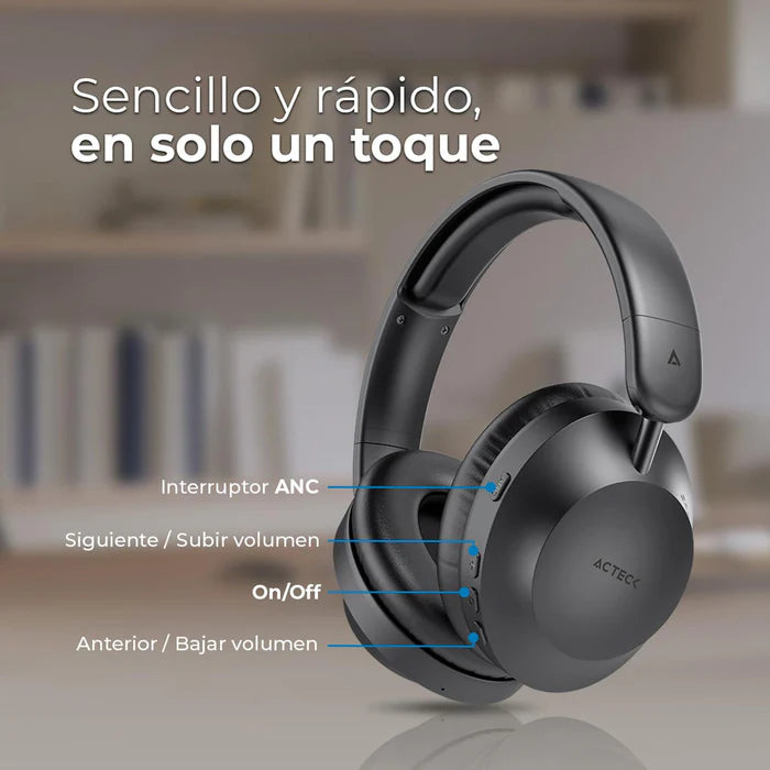 Audifonos Acteck Triton Pro Hp636 Diadema, Inalámbricos, Bt 5.4 - Aux 3.5 MM, Micrófono Omnidireccional, Batería 30 Hrs, Cancelación De Ruido, Ultraligeros