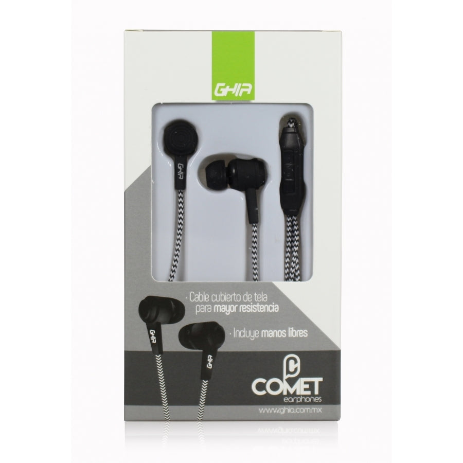 Audifonos Alambricos Ghia Comet Color Negro 3.5mm 1.2 Metros De Cable 3mw De Potencia Con Manos Libres