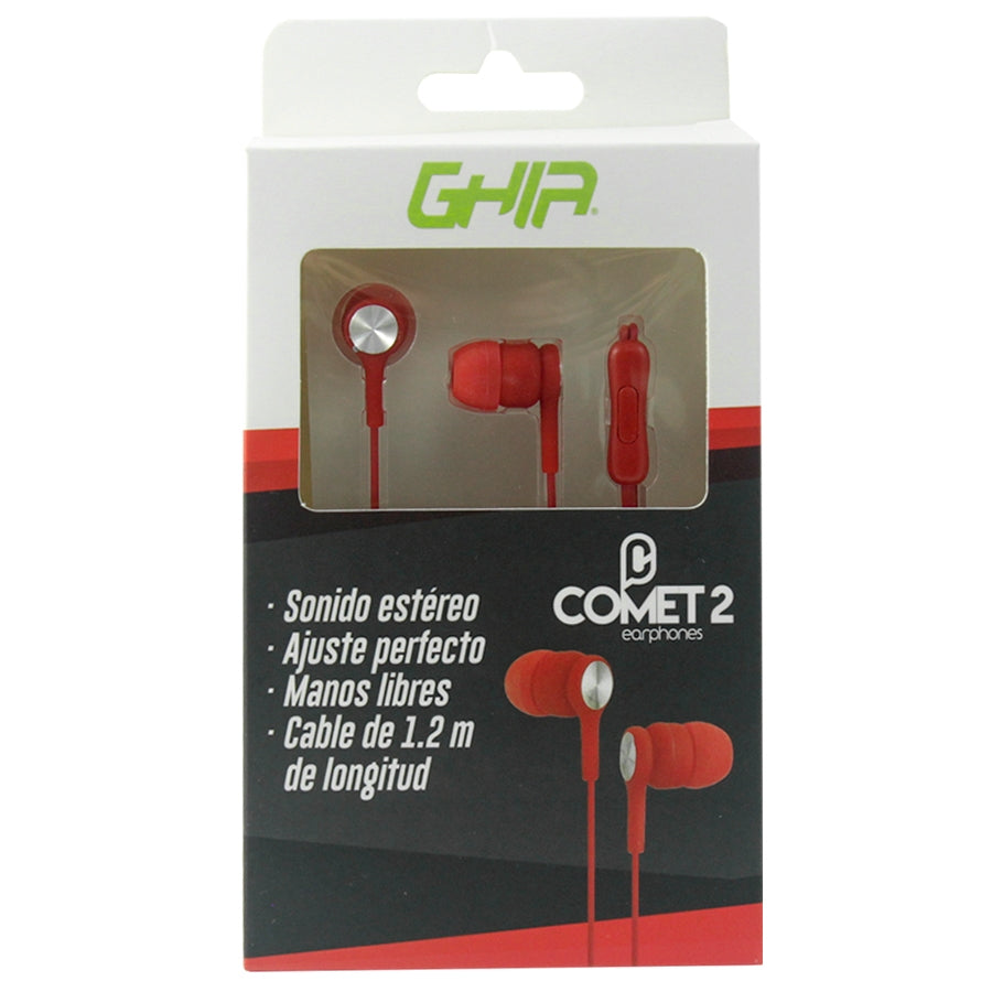 Audifonos Alambricos Ghia Comet2 Con Manos Libres, Color Rojo
