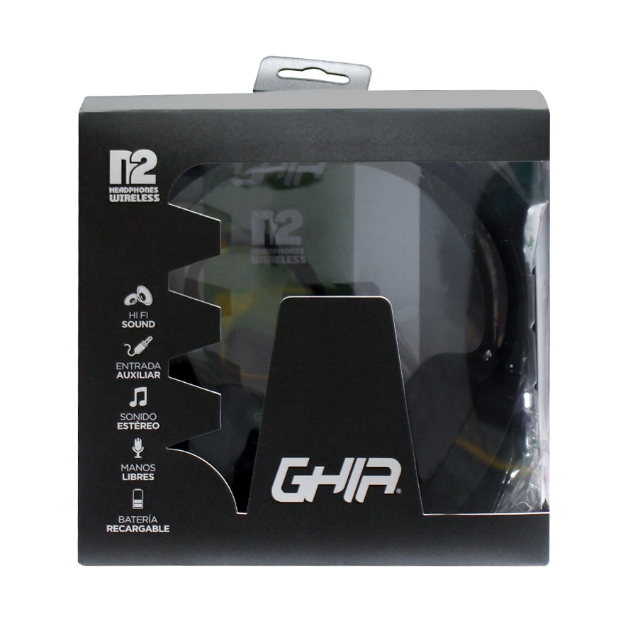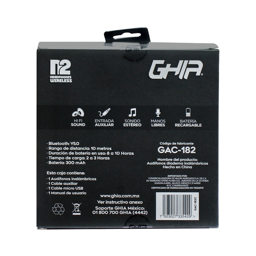 Audifonos Diadema Bluetooth Ghia N2 Hifi Sound, Color Negro, 10m Alcance, Bt 4.2/ Bateria 300mah