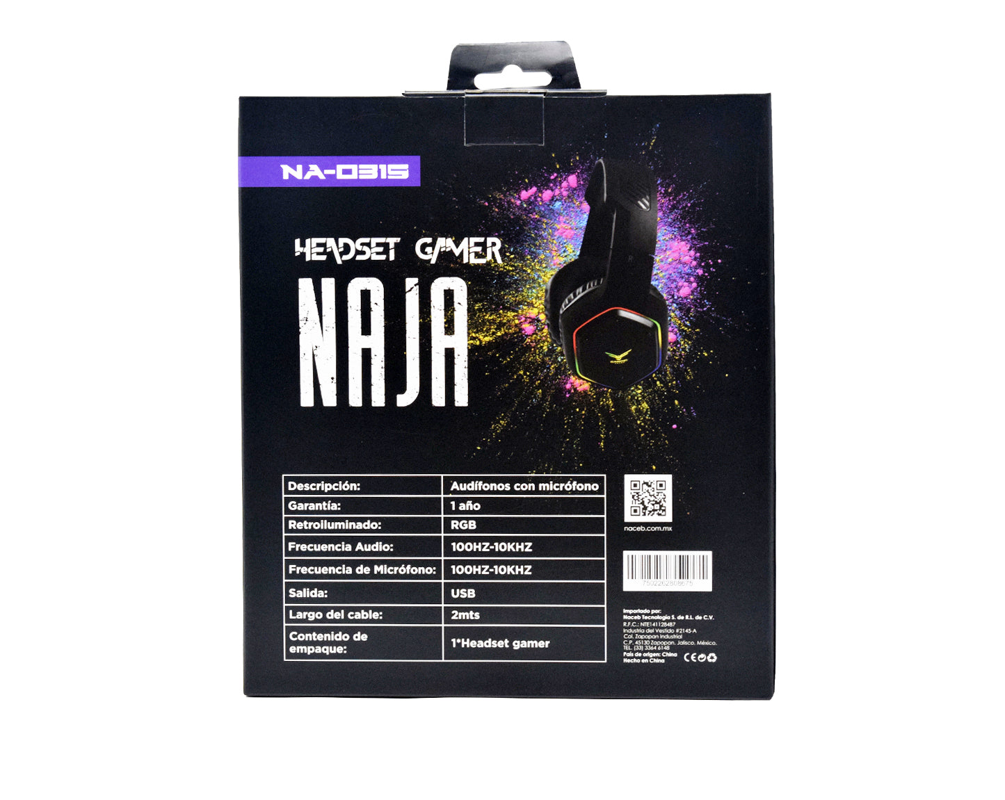 Audífonos Gamer 7.1 RGB NAJA NA-0315 NACEB Diadema Juego Negro
