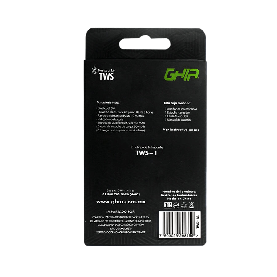 INDICADOR DIGITAL DE BATERIA DEL ESTUCHE BLUETOOTH: 5.0 RANGO DE DISTANCIA: 10M MANOS LIBRES: SI BATERIA: 45 MAH BATERIA DE ESTUCHE: 300MAH