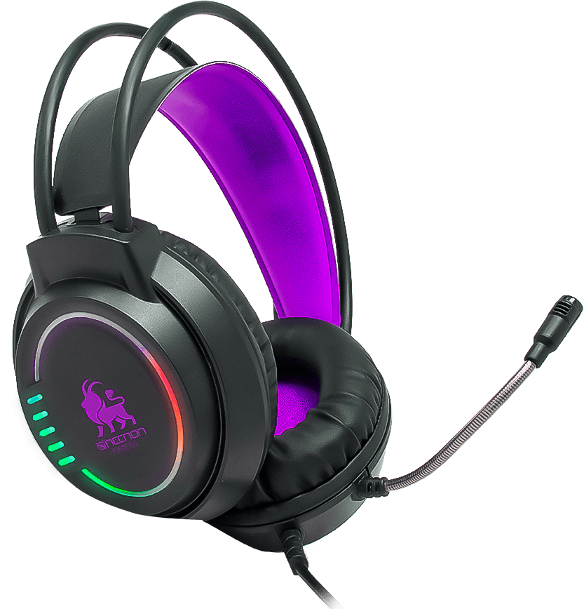 Vive la experiencia de tus videojuegos como todo un profesional, disfruta de total inmersión en el juego con los sensacionales NBHG-KI-MERA Headsets Gaming, que te aíslan del exterior y por sus efectos de iluminación LED te permiten sumergir por completo en el ambiente de tu juego favorito. Esta diadema incluye el adaptador para consolas.