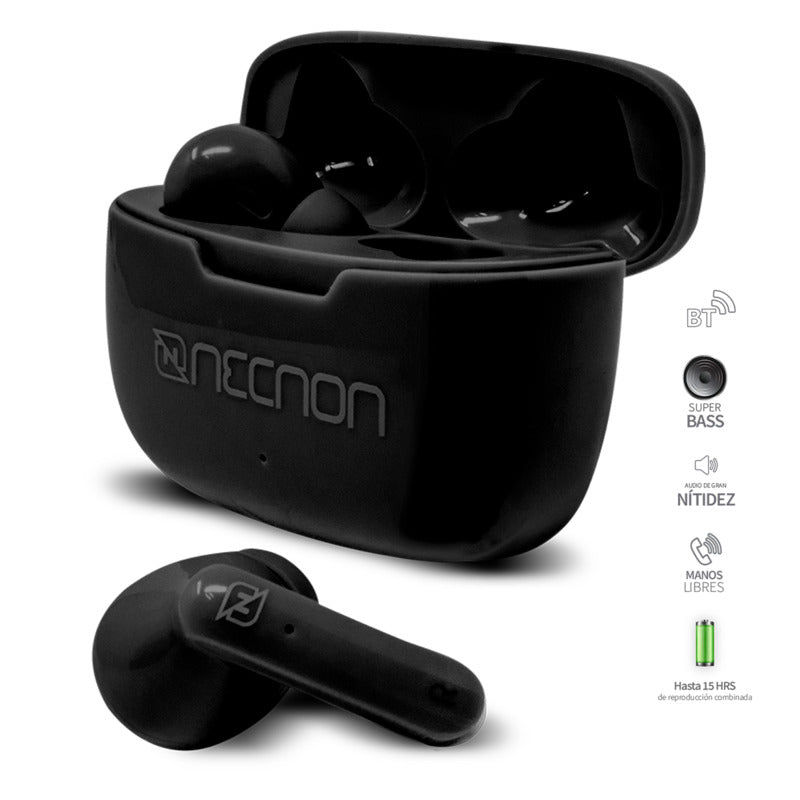 Audifonos Necnon Ntws-03 Bluetooth 5.0 Indicador Led Negro(Nbab030100)