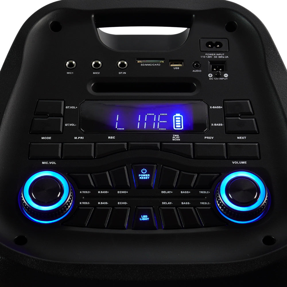 Bafle Vorago Bluetooth Usb, Tf, Doble 10", 80W-Rms, Tws, Microfono Inalambrico, Rgb, Ksp-600