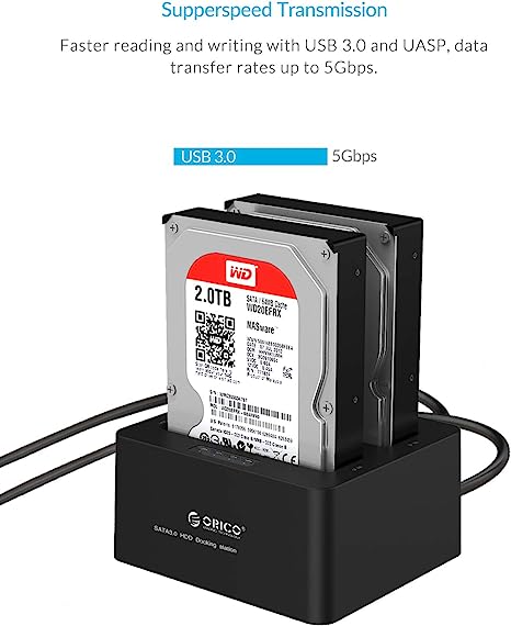 Base Duplicadora Autonoma De 2 Bahías Usb 3.0 De Discos Duros Hdd Sata 2.5
