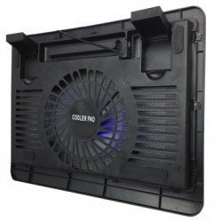 BASE PARA LAPTOP CON SISTEMA DE ENFRIAMIENTO DE UN VENTILADOR QUE ENVIA AIRE A LA BASE DEL EQUIPO. MEJOR ENFRIAMIENTO CONECTOR HEMBRA USB REJILLA METALICA DE GRAN RESISTENCIA LUZ LED PARA AHORRO DE ENERGIA DISENO SUPER DELGADO Y ULTRA LIGERO SOPORTE DE INCLINACION PARA USO COMODO EVITA EL CALENTAMIENTO DE LAPTOP MAYOR ECIENCIA PRESENTACION CAJA COLOR NEGRO