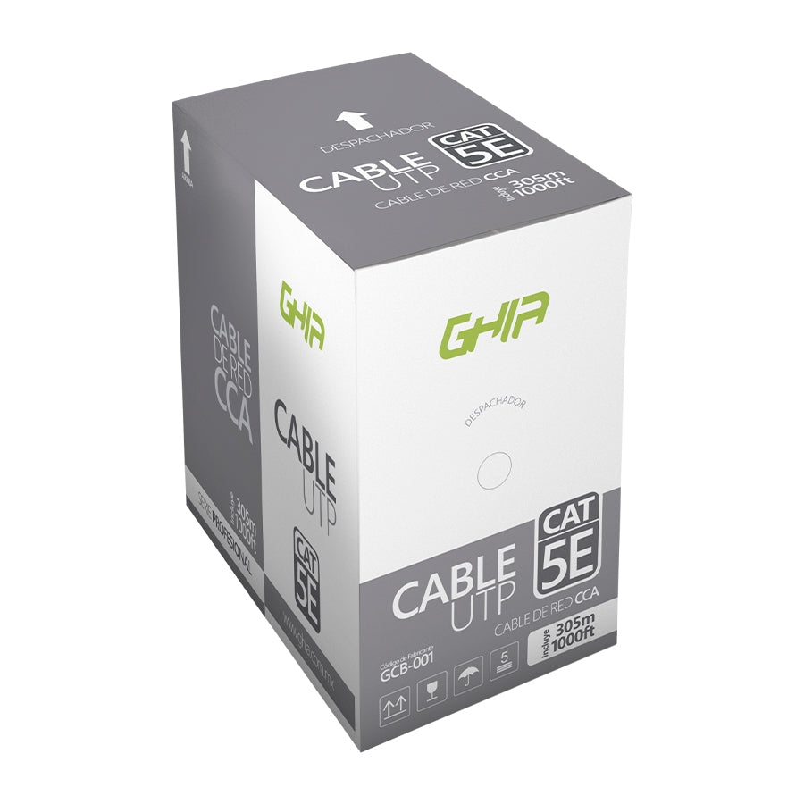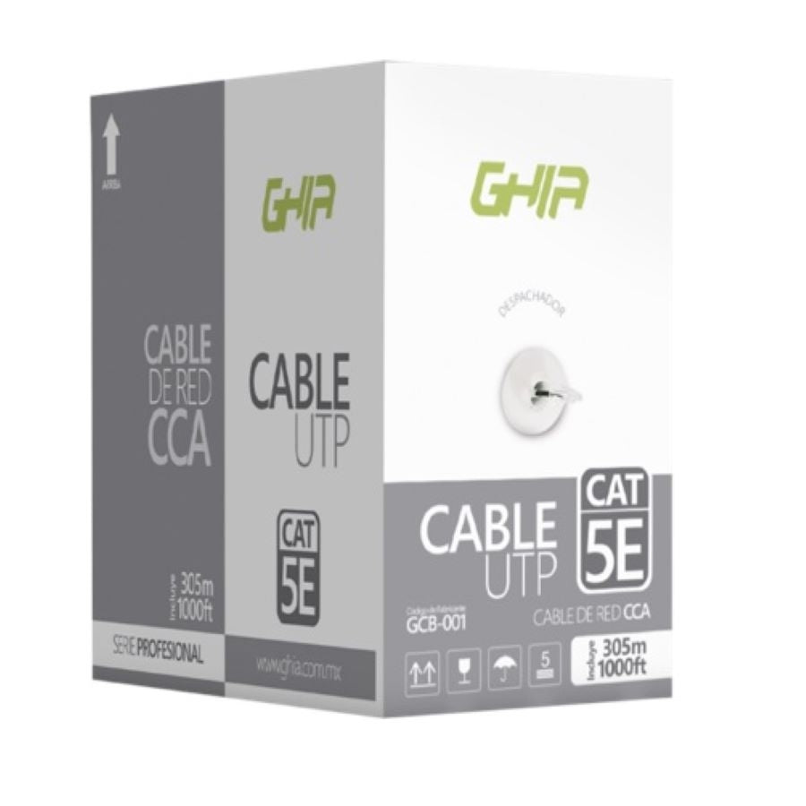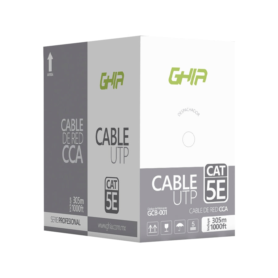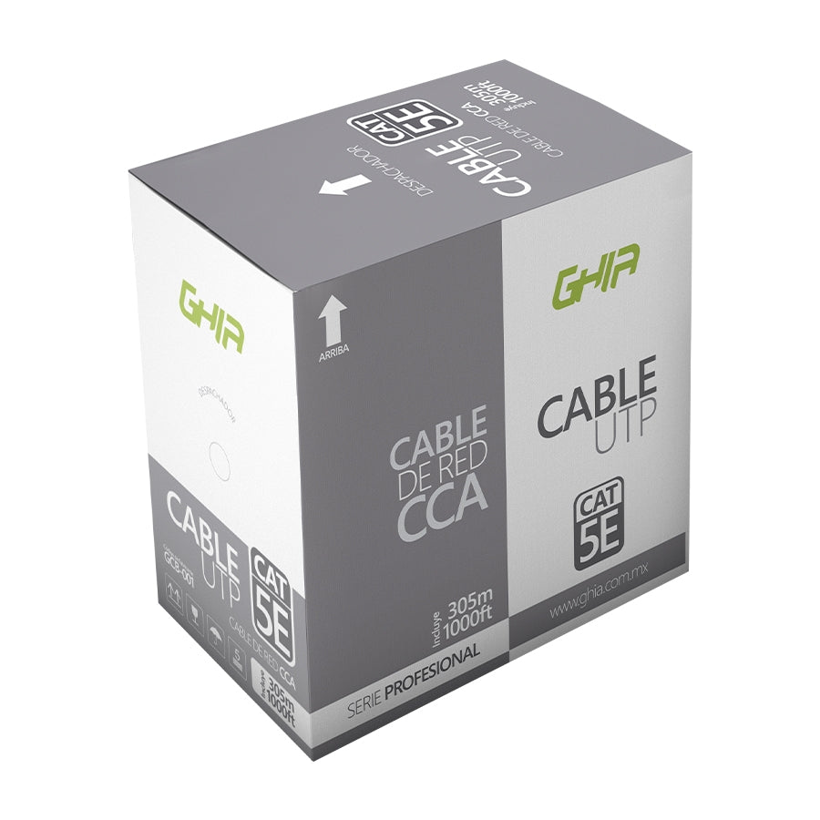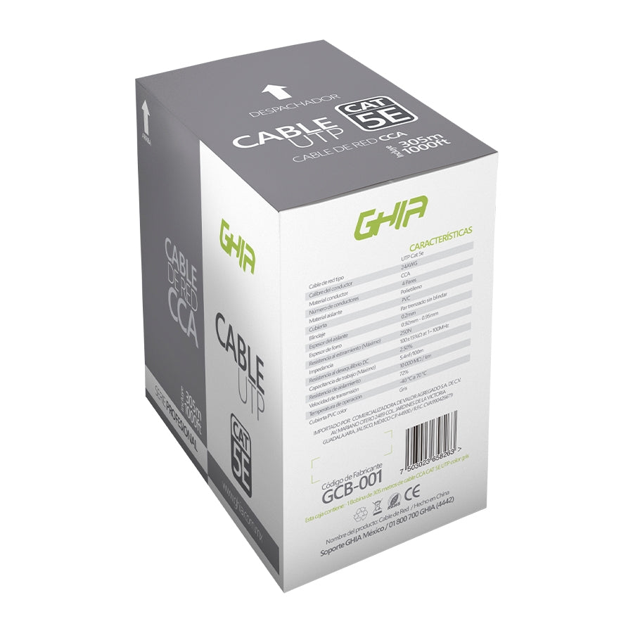 Bobina De Cable Marca Ghia Cat5e Utp Cca Color Gris 24 Awg 305m 1000ft Certificacion Ce, Rohs