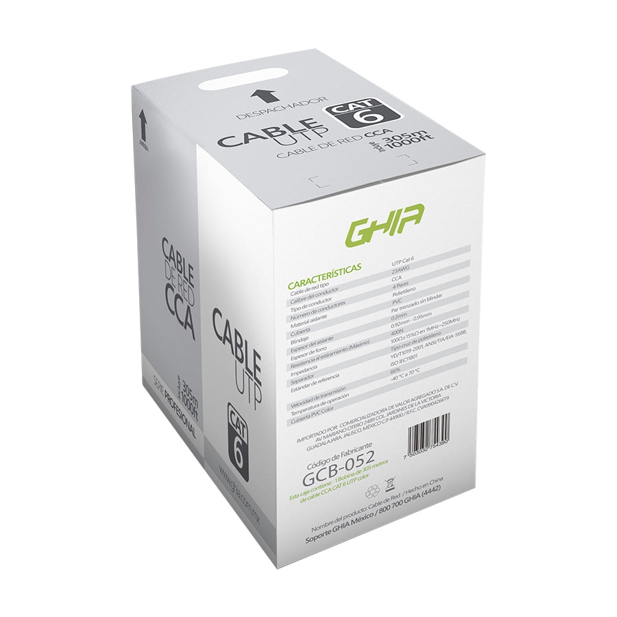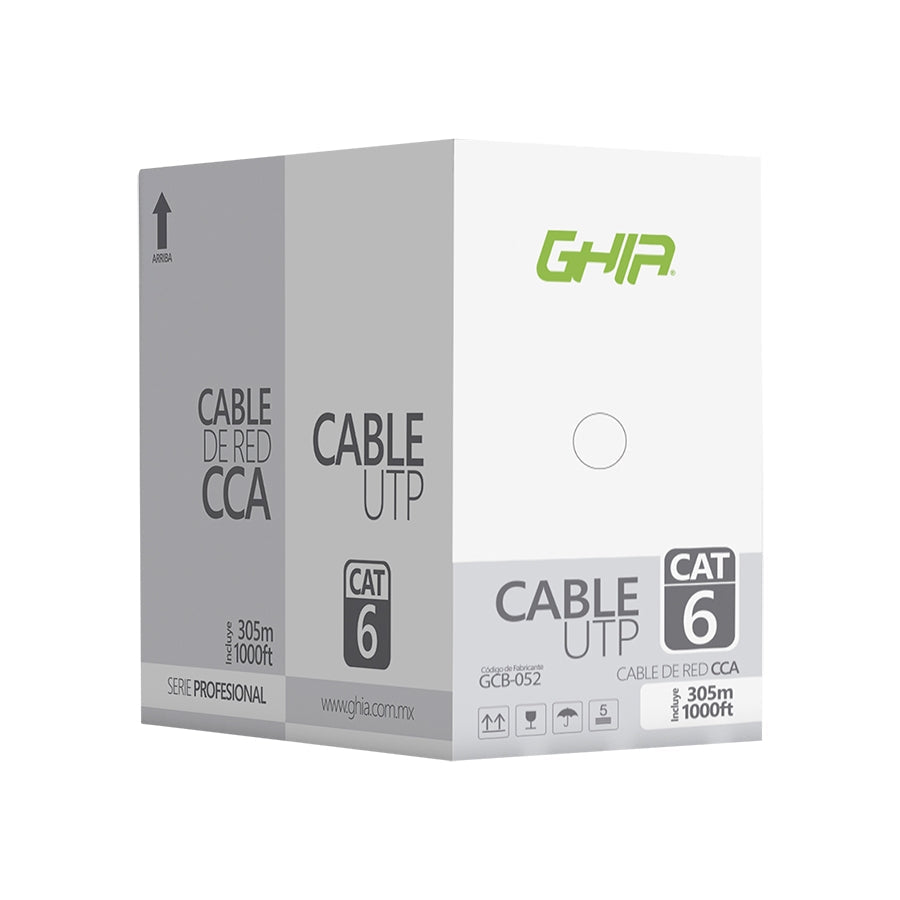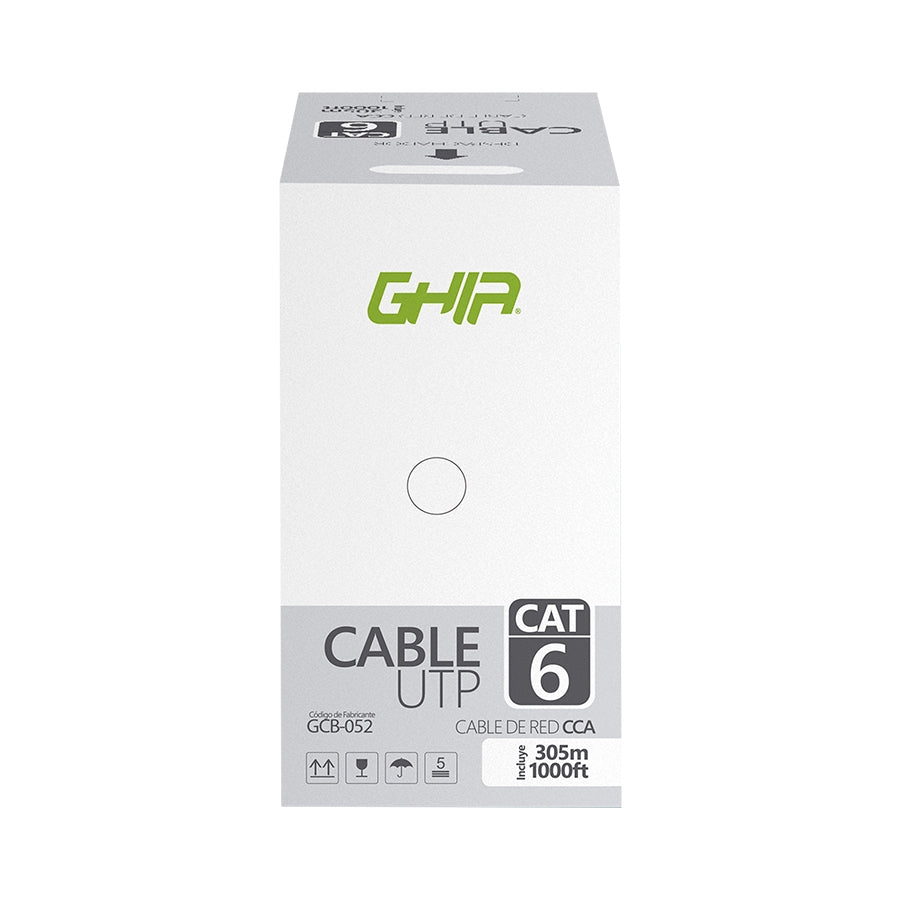 Bobina De Cable Marca Ghia Cat6 Utp Cca Color Blanco 23 Awg Utp 305m 1000ft Certificacin Ce, Rohs