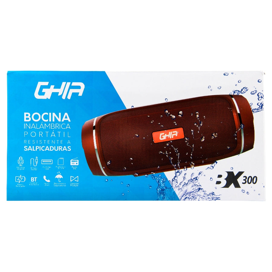 Bocina Bluetooth Bx300 Ghia Roja, Tws, 12w X 2, Aux, Radio Fm, Micro Sd Card, Usb