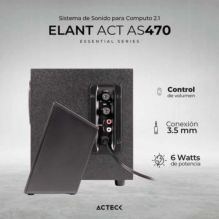 Bocinas 2.1 Acteck Subwoofer Elant As470 Alambrico Negro (AC-935241)