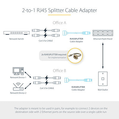 Cable Adaptador Multiplicador Divisor Splitter Rj45 2 A 1 - Hembra A Macho - Divisor Splitter Para Cable De Red Ethernet Rj45 - Startech.Com Modelo Rj45splitter