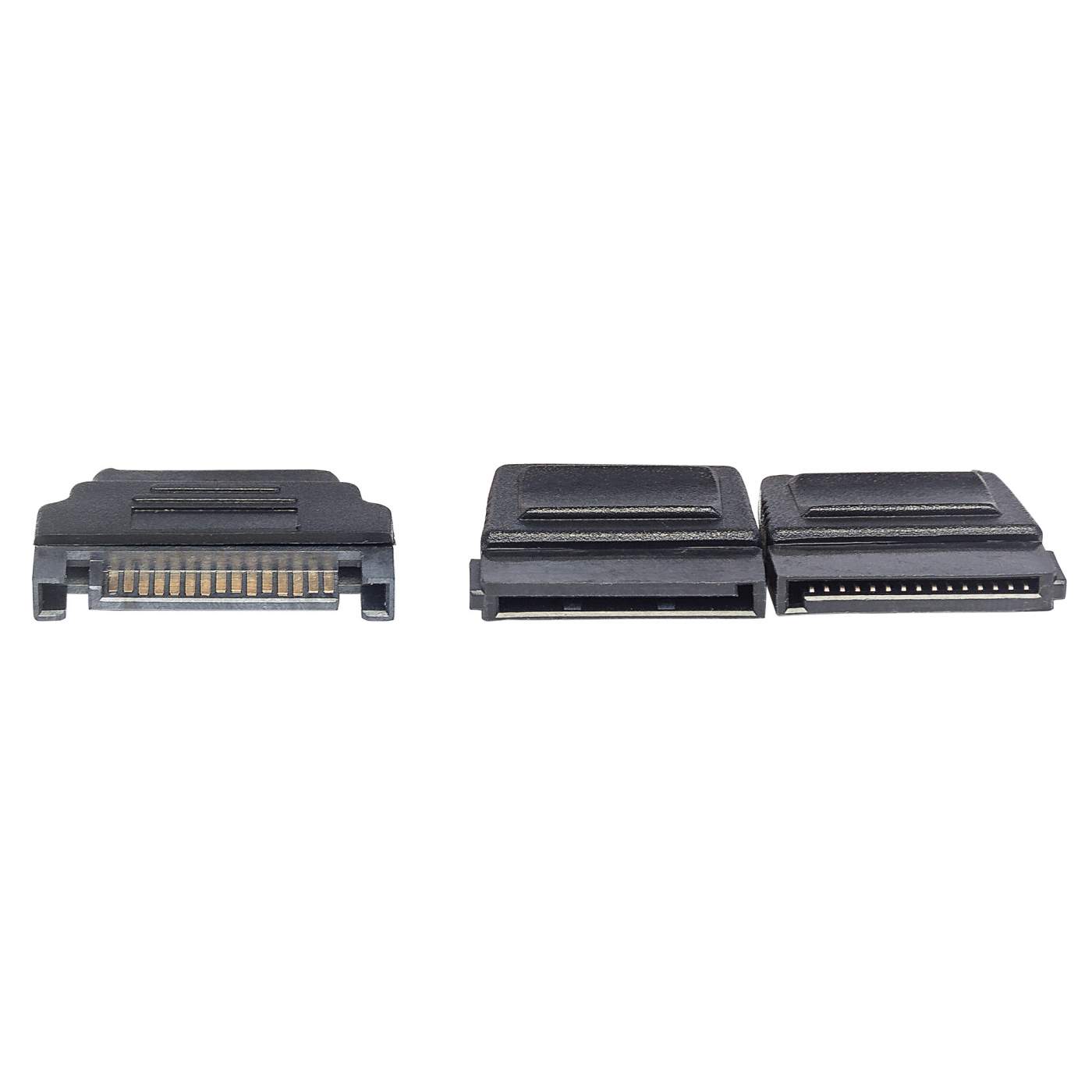 - Una conexión SATA de 15 pines macho a dos SATA 15 pines hembra