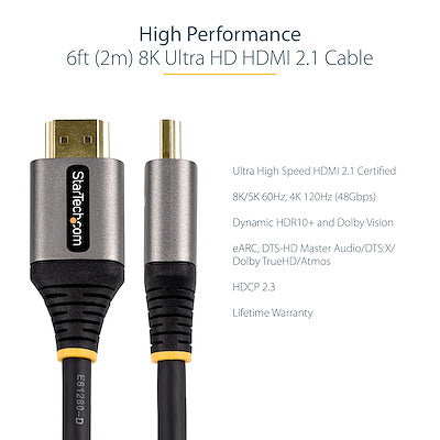 Cable De 2 Metros Hdmi 2.1 8k - Cable Hdmi Certificado De Ultra Alta Velocidad - 48gbps 8k 60hz 4k 120hz Hdr10+ Earc Ultra Hd - Startech.Com Modelo, Hdmm21v2m