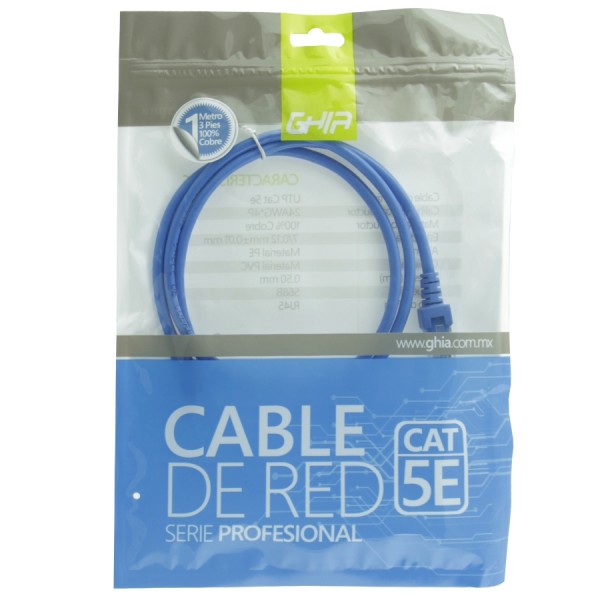 Cable De Red Ghia 1 Mettros 3 Pies Patch Cord Cat 5e Utp Azul 100cobre