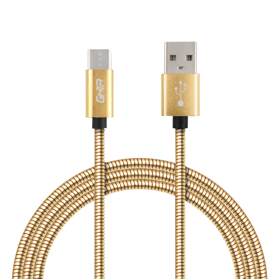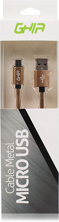 Cable Micro Usb Forro Metalico Ghia 1.0 Metros Usb 2.1 Cargador Y Transferencia De Datos Dorado