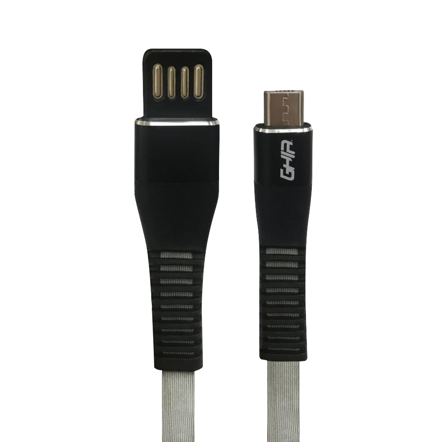 Cable Micro Usb Ghia Plano Reversible Color Gris Con Negro De 1 Metro