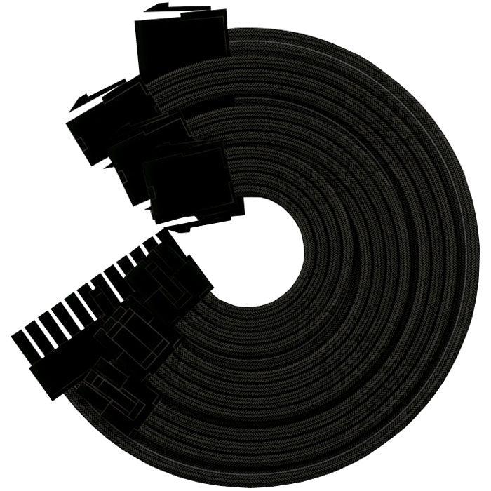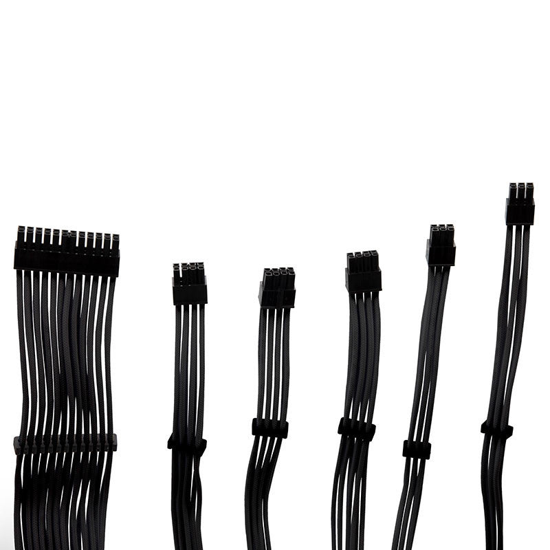Los conectores utilizados en el kit son hembra/hembra y tienen un factor de forma derecho tanto en el caso del conector ATX (20+4 pin) como en el caso del conector PCI-E (6-pin). Además, el color del producto es negro.