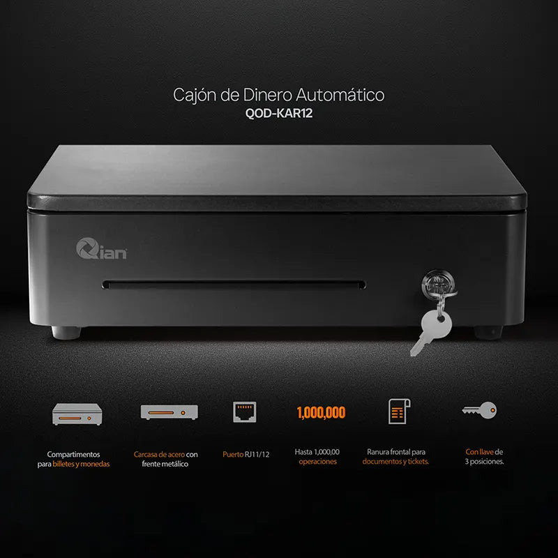 Cajón de Dinero Qian Automático | 4 Billetes y 8 Monedas, QOD-KAR12