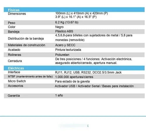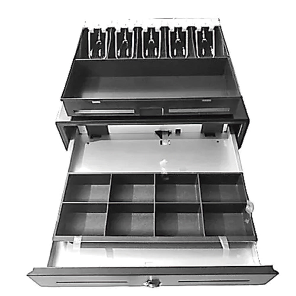 El Cajón de Dinero CD350 está diseñado para recibir una paliza. Funciona con impresora y funciona con suavidad. Perfecto para restaurantes, tiendas minoristas o cualquier lugar donde se necesite almacenar dinero de forma segura.