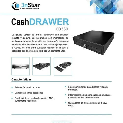 Cajon De Dinero 3nstar Cd350 5 Billetes, 8 Monedas Removible (Cd350)