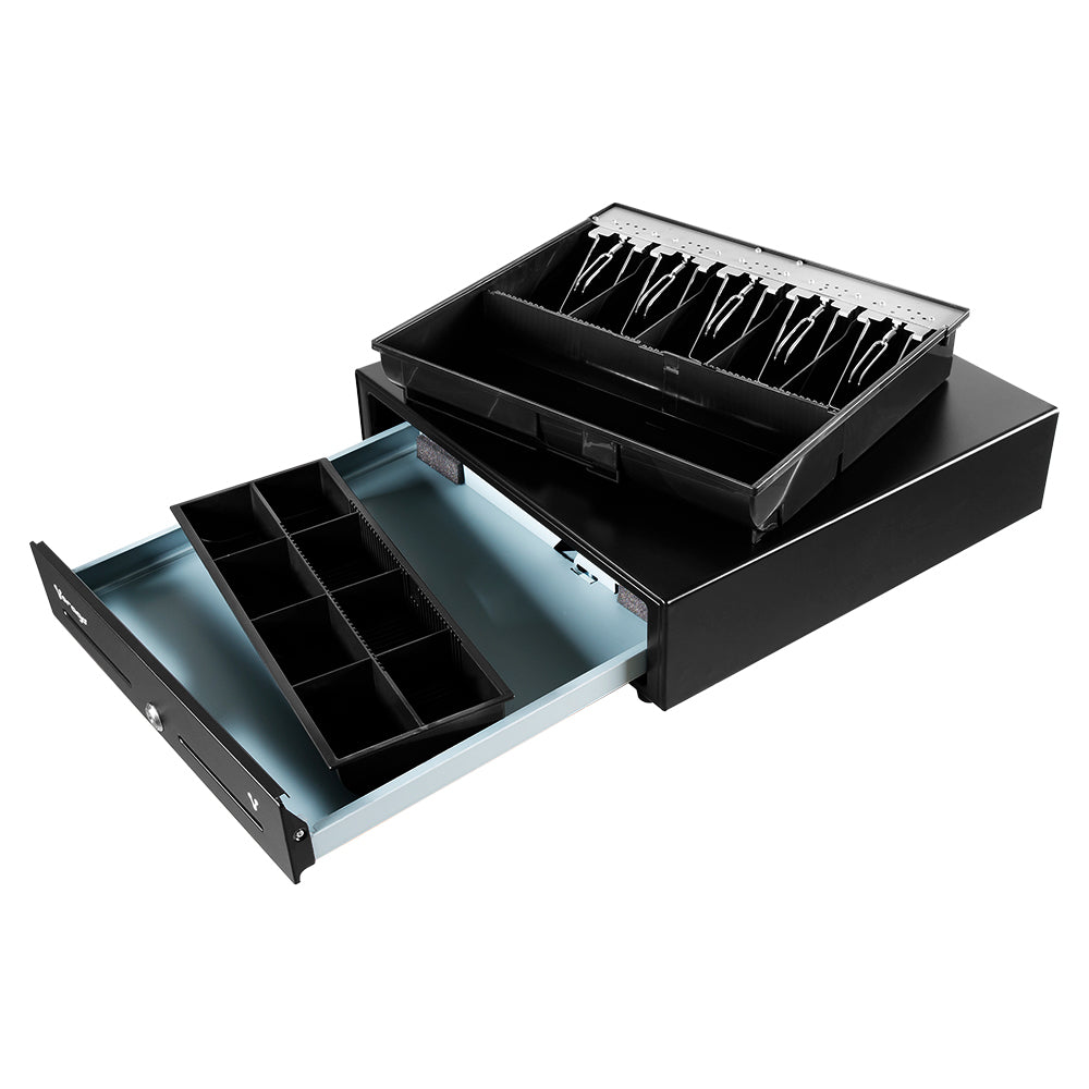 Maneja de manera eficiente y segura los cobros en efectivo de tu negocio con el cajón CD-100 de Vorago. Su diseño robusto y cierre con tres cerraduras, aseguran la protección de tu dinero sea cual sea tu giro.