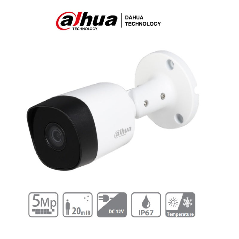 Cámara Dahua Bala DH-HAC-B2A51N-0280B-S2 , 5 Megapíxeles, Lente de 2.8mm, Smart IR de 20 mts, protección IP67, Metalica, 1 año de garantía