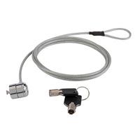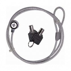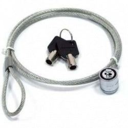 SE AJUSTA A RANURAS DE SEGURIDAD A ESCRITORIOS U OTROS OBJETOS ESTACIONARIOS. CABLE DE ACERO RESISTE Y SOLIDO, CONSTRUCCION COMPLETAMENTE METALICA. PROTEGE EQUIPOS ELECTRONICOS EN CASA, OFICINA Y ESCUELA IDEAL PARA VIAJES COLOR PLATA