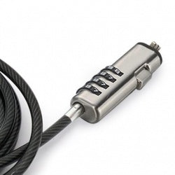 CANDADO DE SEGURIDAD PARA LAPTOP WEDGET DE COMBINACION. CERRADURA DE ALINEACION DE ZINC CON MECANISMO DE COMBINACION CABLE RIGIDO CON RECUBRIMIENTO DE PVC COLOR HUMO DIAMETRO DE CABLE DE 4.4 MM UNION DE CANDADO Y CABLE CON GIRO DE 360 GRADOS INCLUYE CORRE AJUSTABLE DE VELCRO COMPATIBLE CON SISTEMA DE SEGURIDAD NOBLE SLOT WEDGER