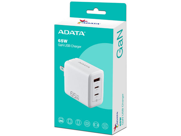 Cargador De Pared Adata Usb 65W,Usb-C Blanco CHARGERU-0653-QCPDWH
