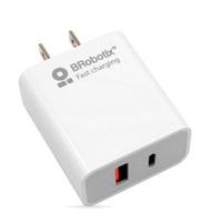 Cargador De Pared Brobotix Carga Rapida, Usb V3.0 Dual, Usb-A X1, Usb-C X1 , 18w, Color Blanco
