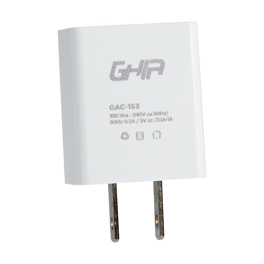 Cargador de Pared Ghia con dos Salidas Usb 2.1ª, 1.0a