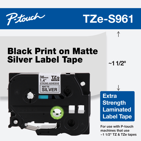 Cinta Brother Tzes961 Negro Sobre Plata Mate 36 Mm X 8M