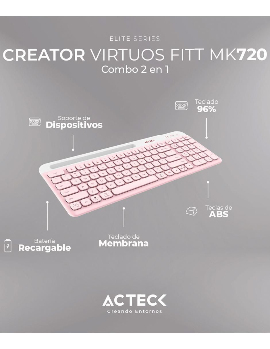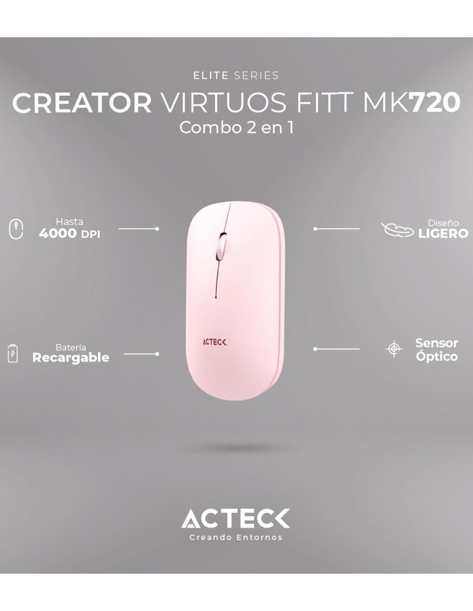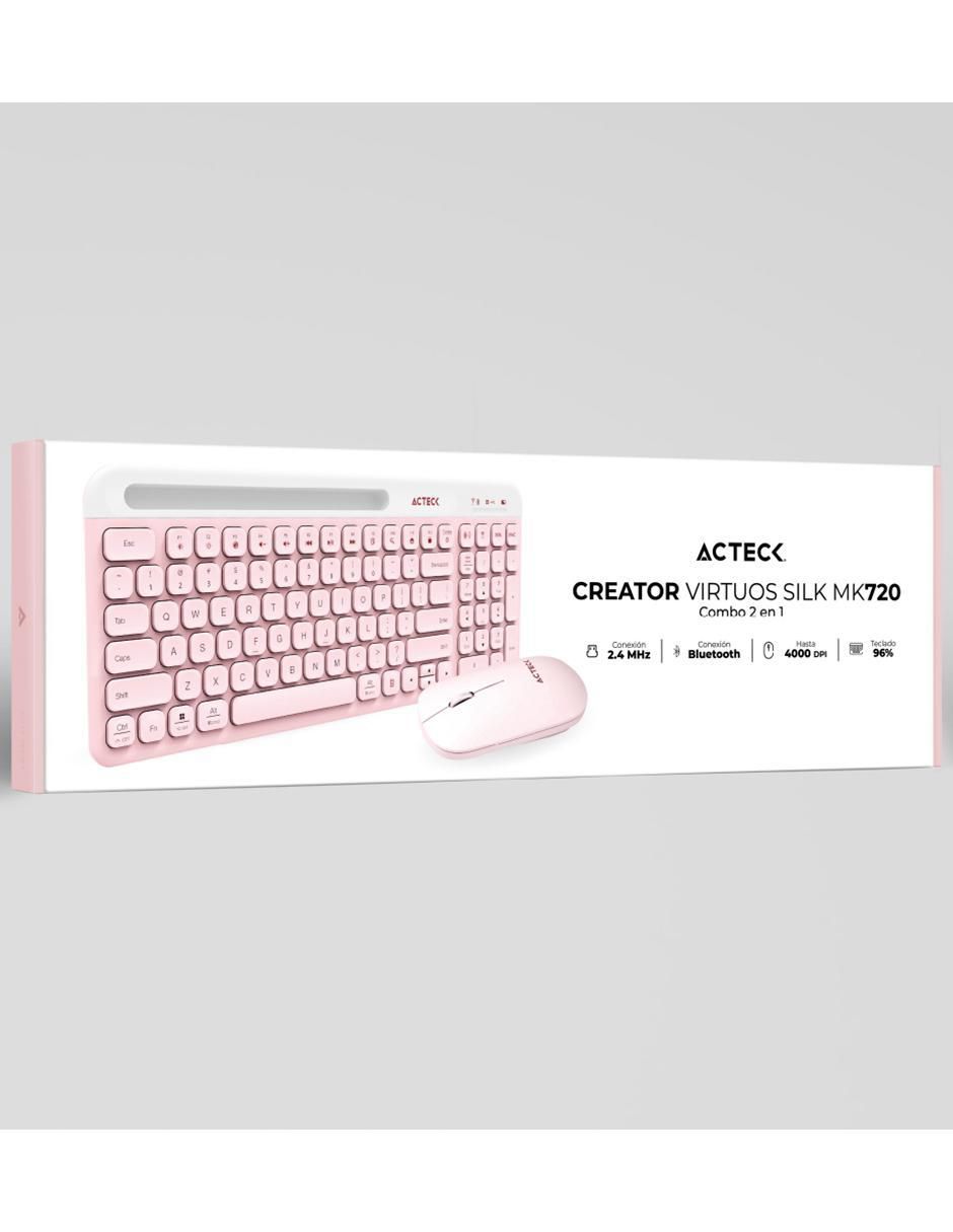 Combo Acteck Silk Mk720 2-1 Ergonomico, Inalambrico Usb, Rosa (AC-936279)
