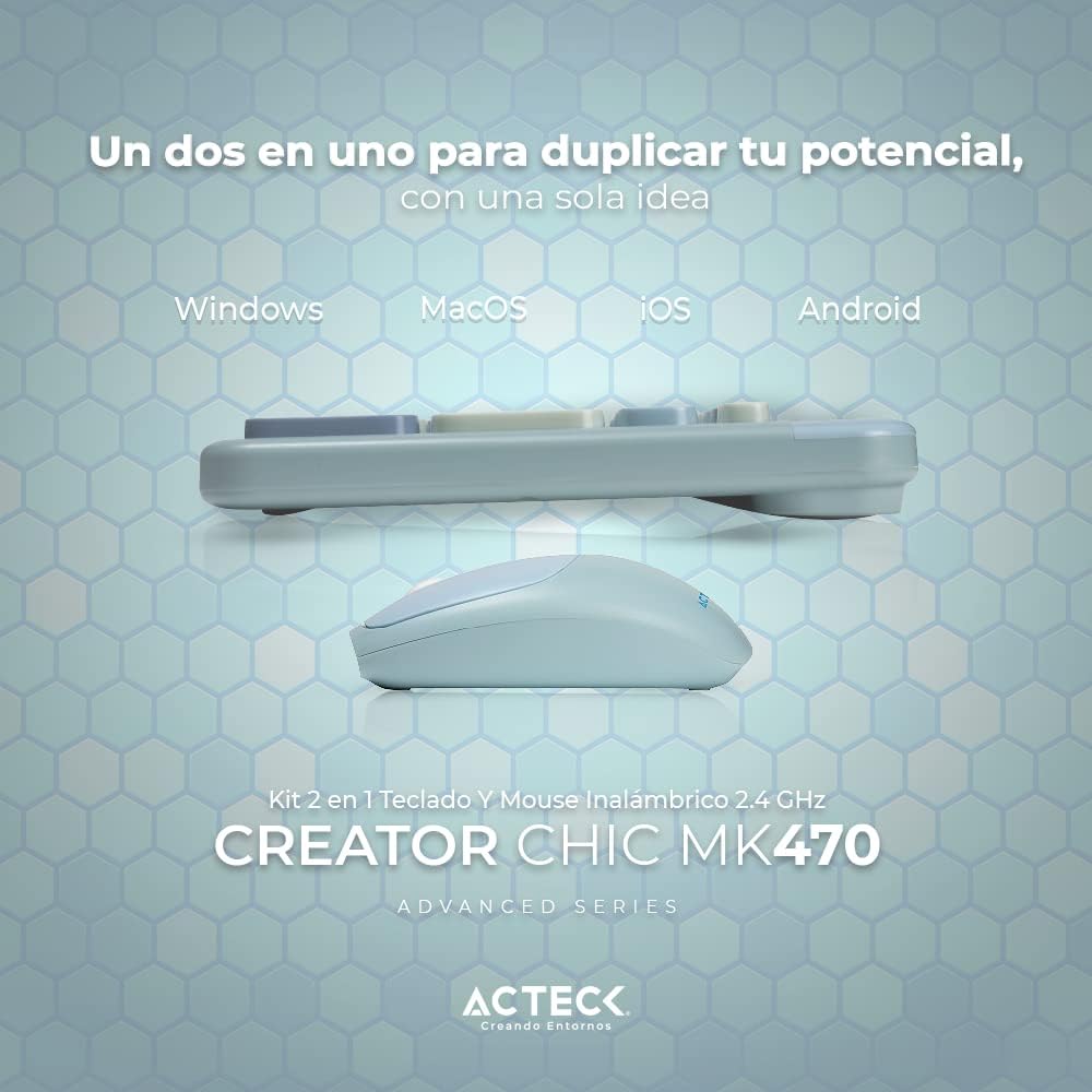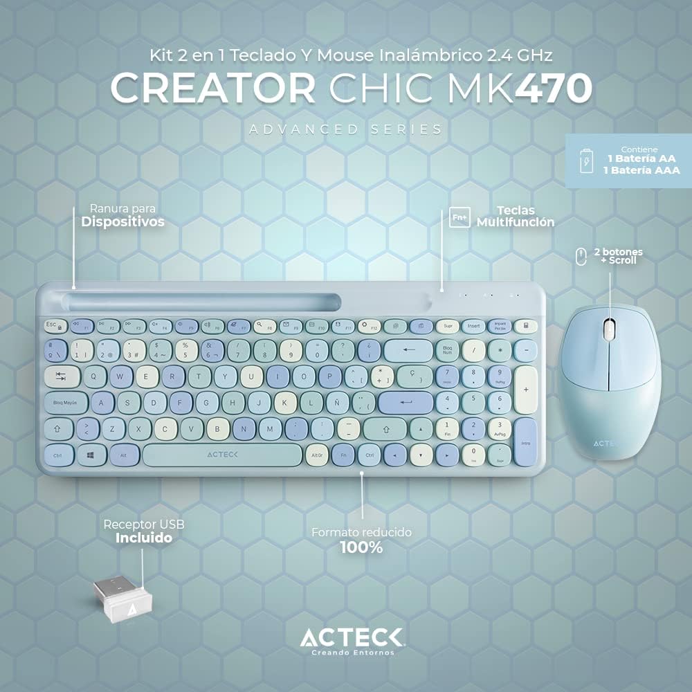 Combo Inalámbrico 2 en 1 Creator Chic Colors MK470, Teclado + Mouse 2.4Ghz Diseño Delgado + 2xBaterías AAA Incluidas Azul Advanced Series