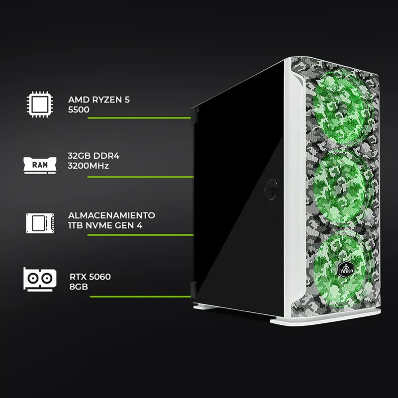 Computadora Gamer Yeyian Hollow Ryzen 5 RTX 5060 Gaming Alto Rendimiento