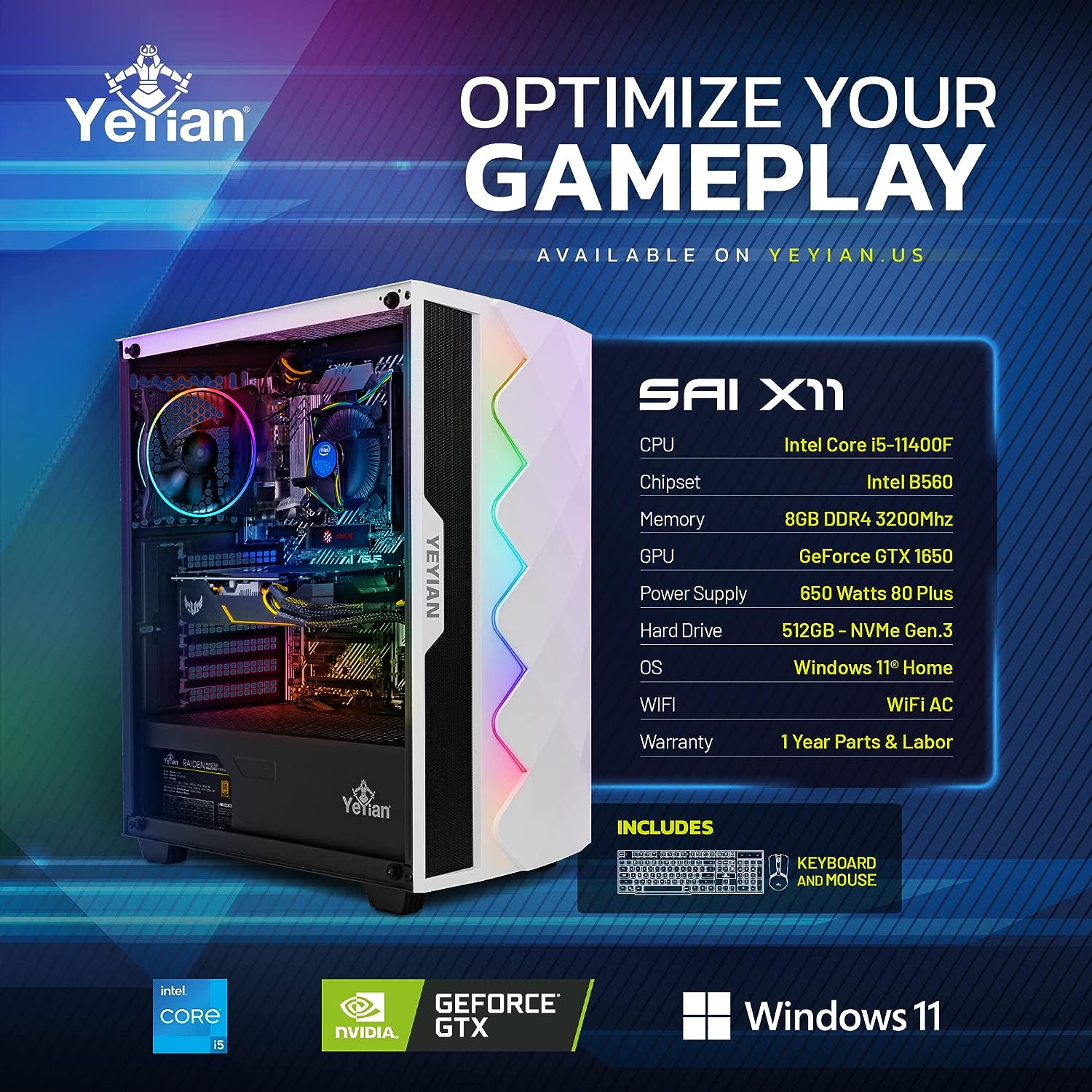 Computadora Gamer Yeyian Sai X11, Intel I5, Ram 8Gb Ddr4, Gtx 1650, Almacenamiento 512 Gb Nvme, Windows 11 Home