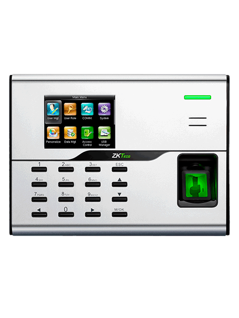 El dispositivo UA860 es una terminal biométrica con pantalla a color de 2.8 pulgadas, diseñada para realizar la gestión de Tiempo y Asistencia y aplicaciones de Control de Acceso Básico. Integrado con el lector de huella digital BioID para un reconocimiento y verificación de forma eficaz.