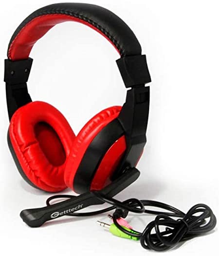 Diadema Headset Getttech Gh-2100 Stream 3.5mm, Mic Retractil, Negro, Rojo