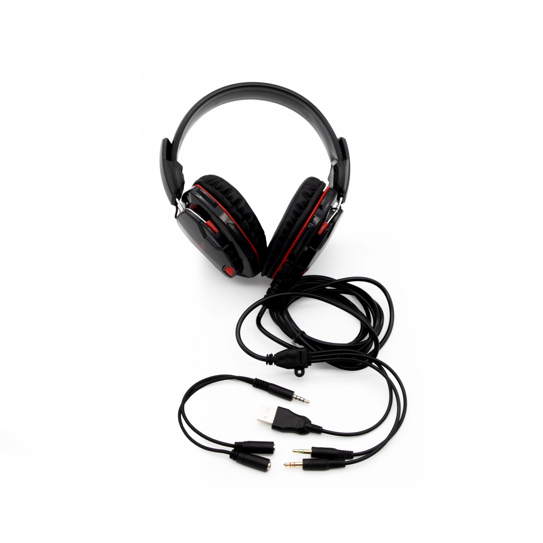 Diadema Yeyian Yh2000 Tempest Led, 3.5mm, Pc, Cons, Usb, Con Microfono Negro Con Rojo