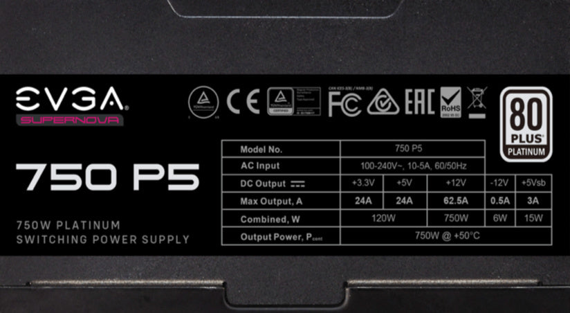 FUENTE DE PDOER EVGA 220-P5-0750-X1 SUPERNOVA 750W P+80+ FULL MODULAR