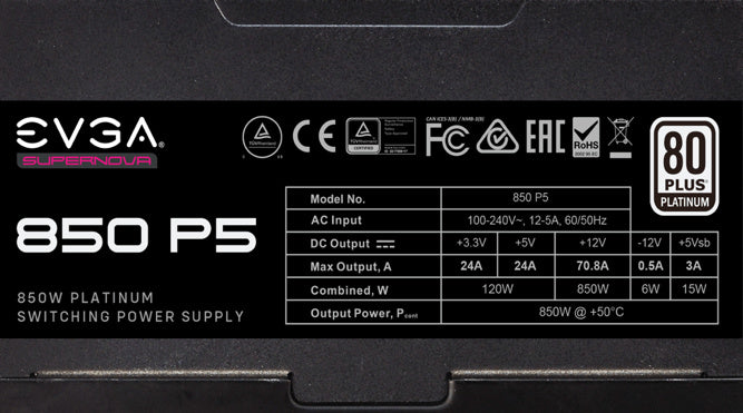 FUENTE DE PODER EVGA 220-P5-0850-X1 SUPERNOVA 850W P+80+ FULL MODULAR