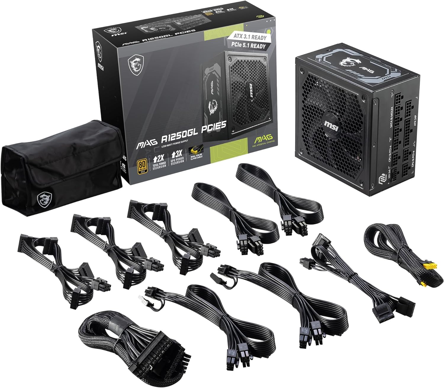 Fuente De Poder Msi Mag A1250Gl Pcie5 1250W 80 Plus Gold Full Modular