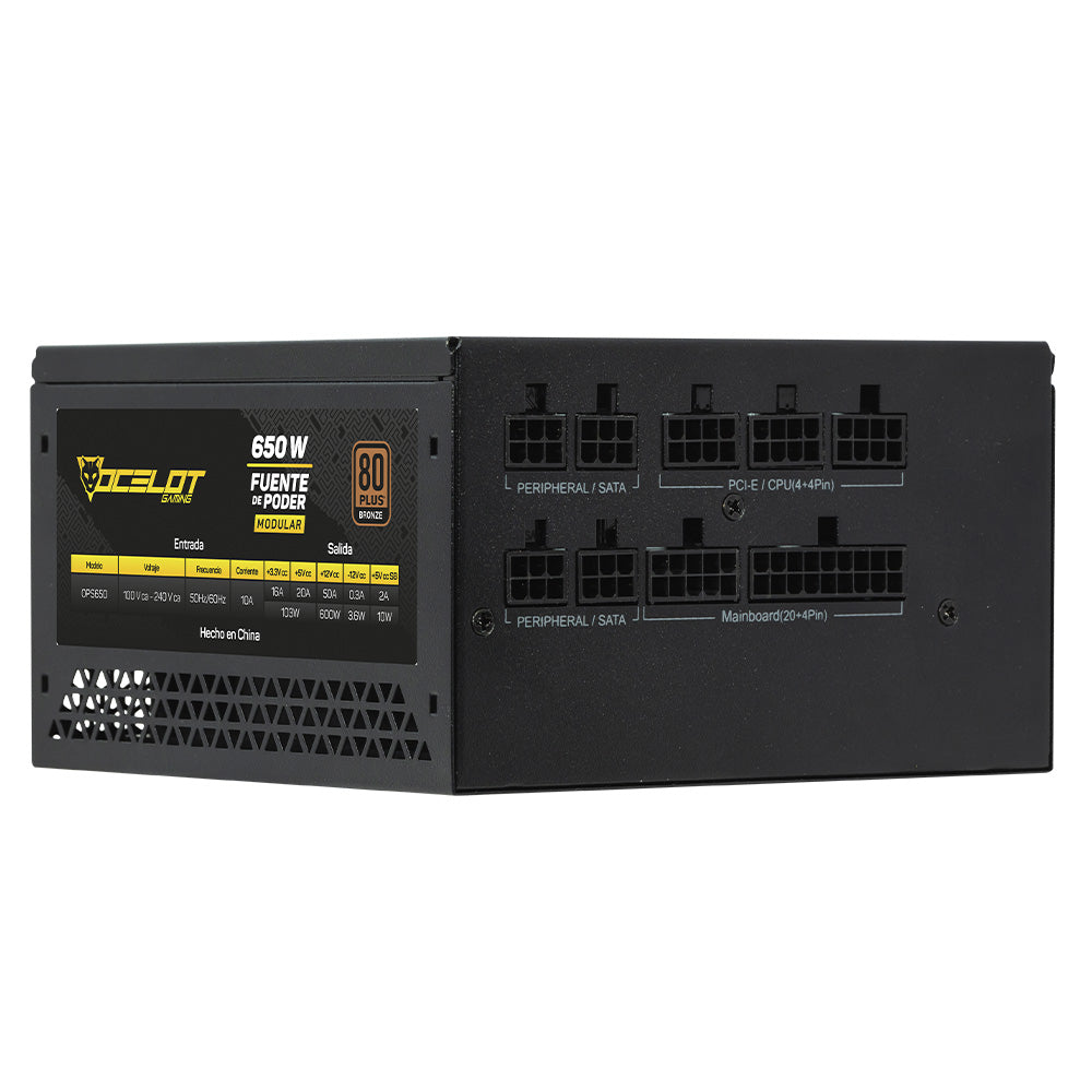 Fuente de poder Ocelot Gaming OPS650. Formato ATX, 650 Watts de potencia, Modular, certificación 80+ Bronze.