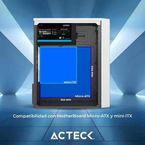 Gabinete Acteck Kioto Gc220f Matx Mini Torre Metalico 500w Blanco