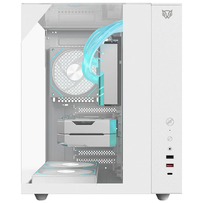 Gabinete Gamer BALAM RUSH TANK MAJESTIC 6600 ATX Media Torre 5 Fan Panel Cristal Templado USB-C ARGB - Blanco