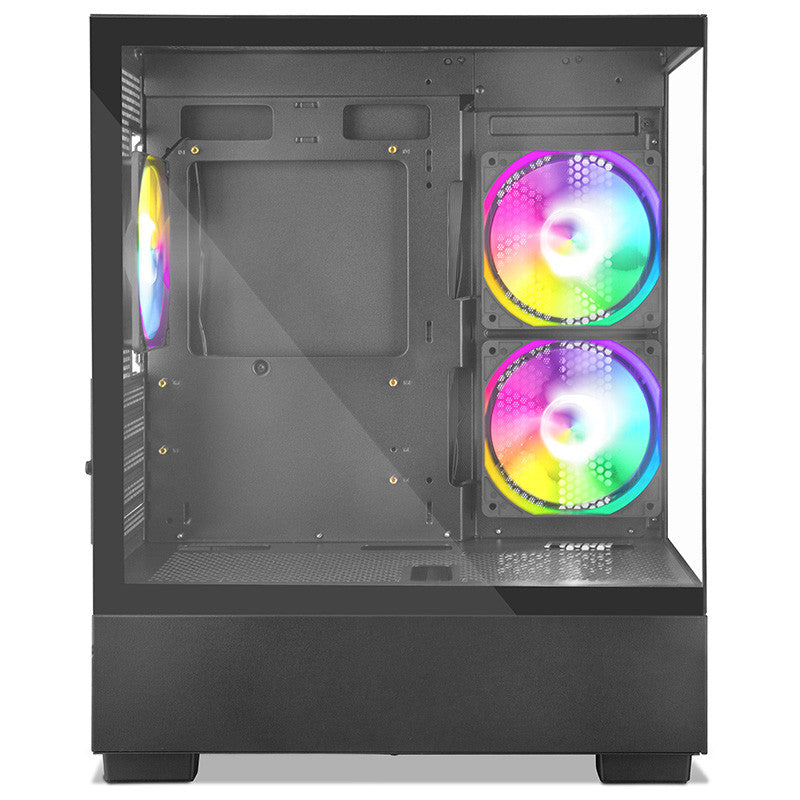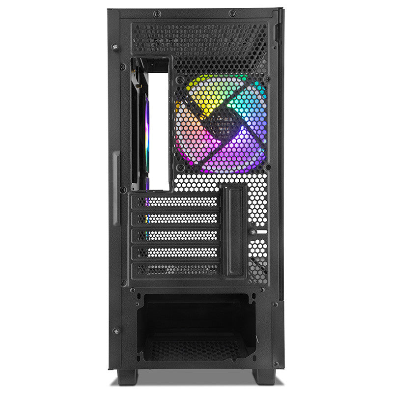 Este gabinete lo tiene todo: incluye 2 ventiladores FRGB de 120mm al lado del M/B y 1 ventilador FRGB de 120mm en la parte trasera (ya instalados), además de espacio para 2 ventiladores de 120/140mm en la parte superior y 2 ventiladores de 120mm en la cubierta de la fuente de poder. Disfruta de un flujo de aire superior, temperaturas bajo control, y una iluminación RGB que hará brillar tu setup con estilo y rendimiento incomparables.