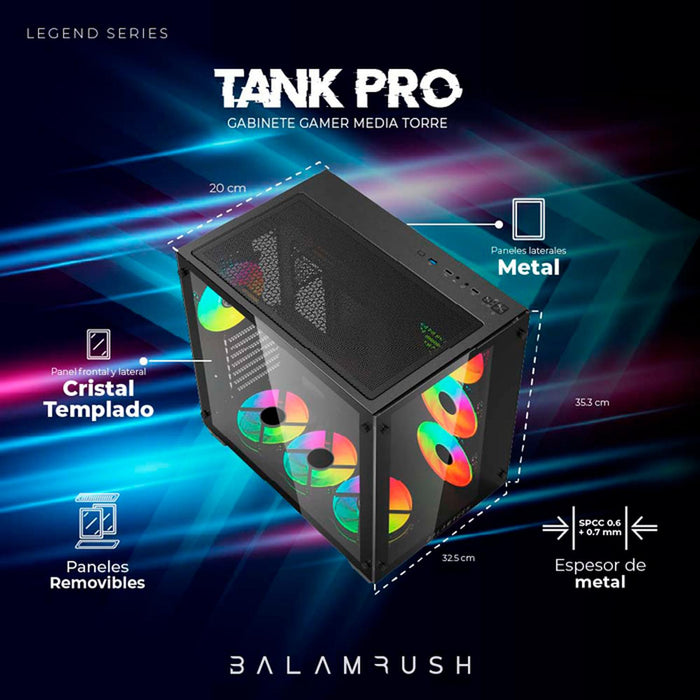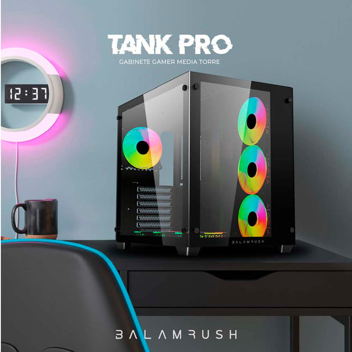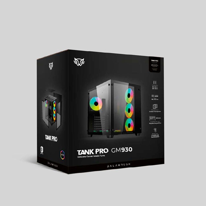 Gabinete TANK PRO GM930 Media Torre 4 Fan compatible con tarjetas micro ATX, mini ITX. No incluye fuente de poder.
